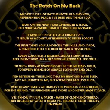 We are a non-profit charitable Association of Combat Veterans from all branches of the Untied States Armed Forces who ride motorcycles as a hobby. Our focus is to help veteran care facilities provide a warm meal, clothing, shelter and guidance or to just simply say " Thank you" or "Welcome Home".